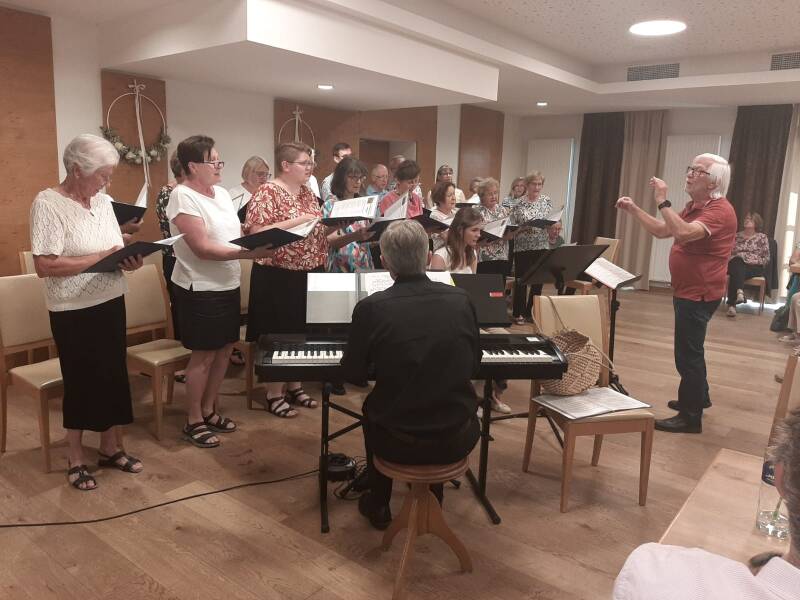 Auch wenn das Singen in der Probe allein schon Freude macht, setzen wir uns doch Ziele: Messgestaltungen, eigene Konzerte, Mitwirkung bei diversen Veranstaltungen. Um die bestmögliche Qualität bei der musikalischen Gestaltung zu sichern, wird ein möglichst regelmäßiger Chorbesuch vorausgesetzt und erwartet.